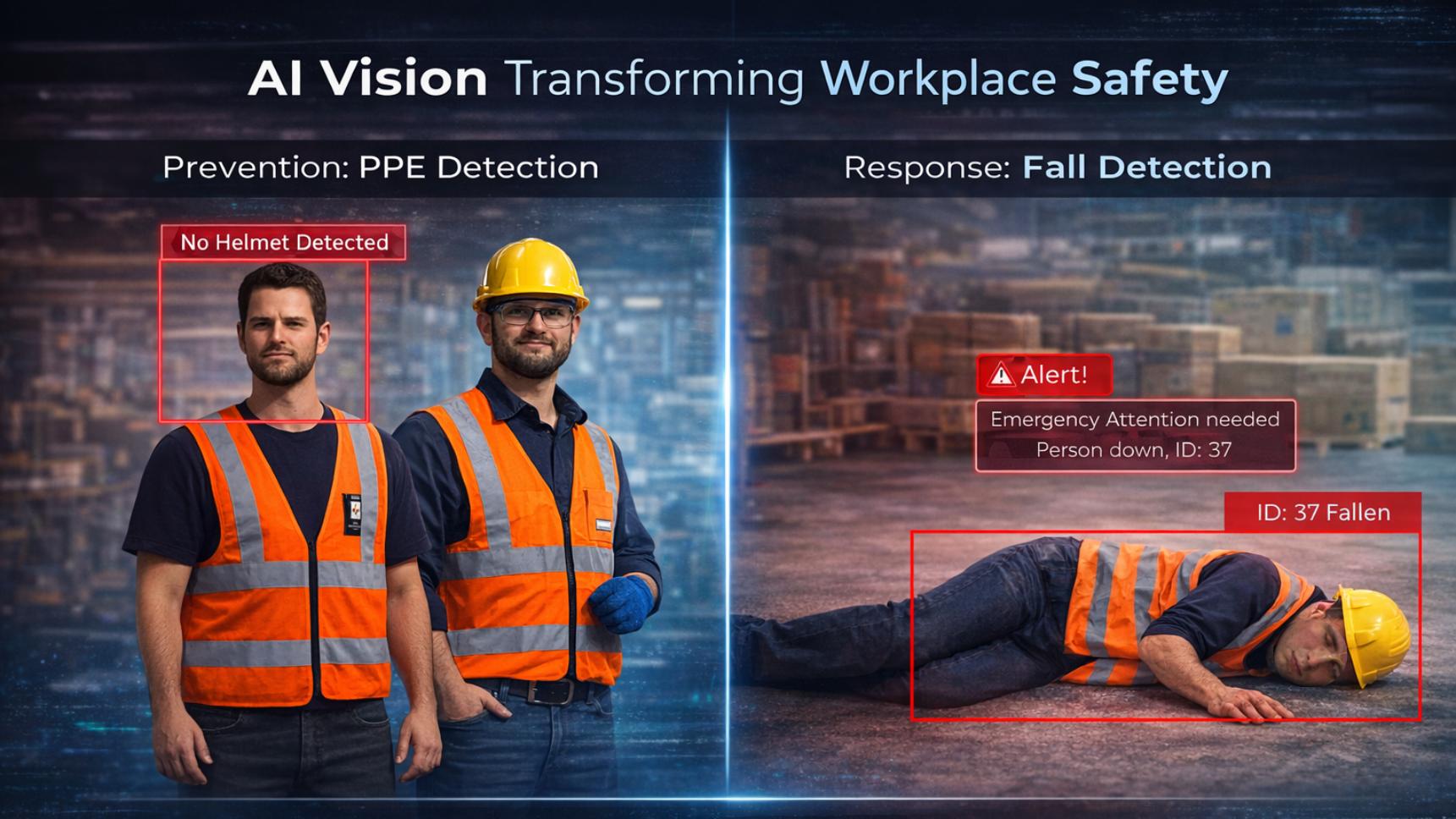 This is where intelligent fall detection steps in. The software doesn't just look for missing gear, it actually understands human movement. If a worker collapses near a manufacturing line falls in a care facility, the system identifies the sudden drop immediately.